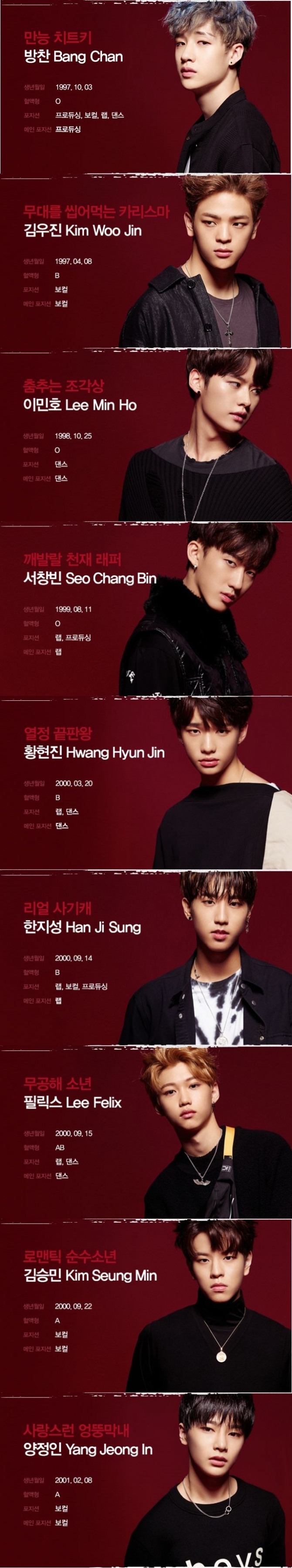 서창빈 august 11, 1999 (age 21) He was one of the dancers for bts's concert tour. May 23, 2019 · stray kidsのアルバムをmv、楽曲紹介、作詞・作曲者情報等まで随時更新式でまとめていきたいと思います! 他のアイドルよりも圧倒的に動画コンテンツが多いので、アルバム紹介と一緒にmvや音楽番組出演動画、その他動画(. 김우진 april 8, 1997 (age 24) he is a former sm entertainment trainee for a year where he used to train with nct members. 방찬, 김우진, 이민호, 서창빈, 황현진, 한지성, 필릭스, 김승민, 양정인은 가장 완전한 조합으로 평가받은 9인 체제를 지켜내며 최종 멤버를 확정 지었다.